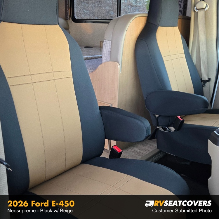 Neosupreme seat covers offer a perfect blend of style, comfort, and durability for your Ford E350/E450s interior. Constructed from a high-quality neoprene-like material, they provide a snug fit, water resistance, and easy maintenance, making them an ideal choice for enhancing both the look and longevity of your car seats.